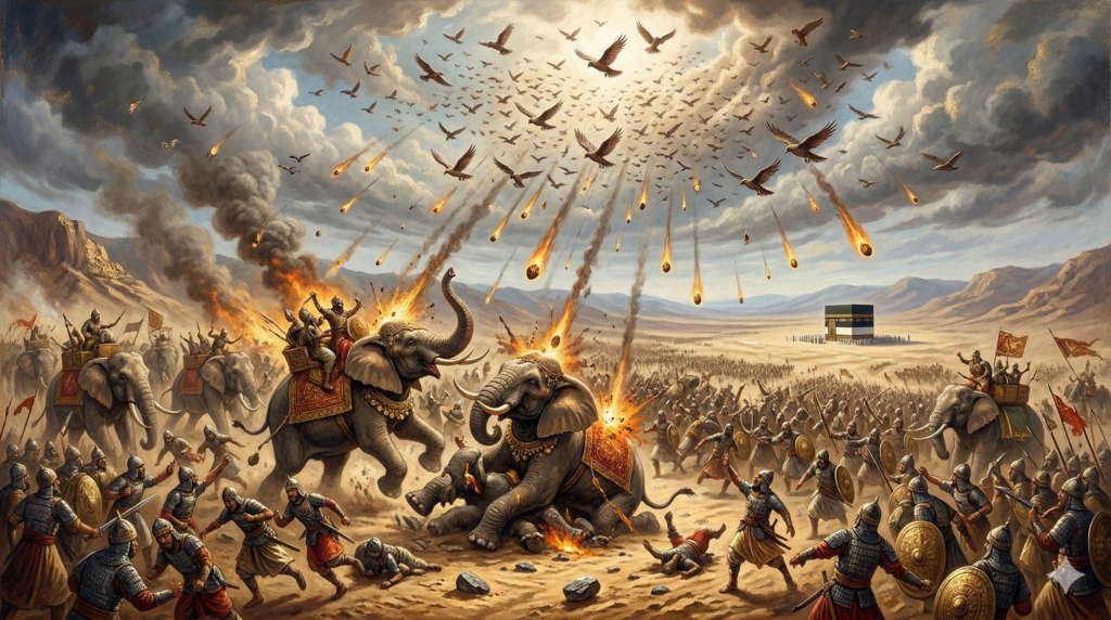 Kejadian tersebut terjadi dalam peristiwa yang dikenal sebagai Year of the Elephant, ketika Abrahah berusaha menghancurkan Ka’bah dengan membawa pasukan bergajah yang sangat kuat. Namun, rencana besar tersebut gagal total ketika Burung Ababil datang membawa batu-batu kecil dari neraka yang menghancurkan pasukan tersebut secara ajaib. Peristiwa ini menjadi salah satu mukjizat terbesar yang tercatat dalam sejarah.